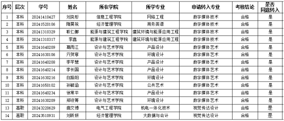 根据《永利集团关于做好学生转专业工作的通知》的相关要求与规定,经学生申请、学院审核、教务处复核、学院考核,拟接收转专业学生14名。现将名单予以公示,公示期为2025年5月20—5月22日。