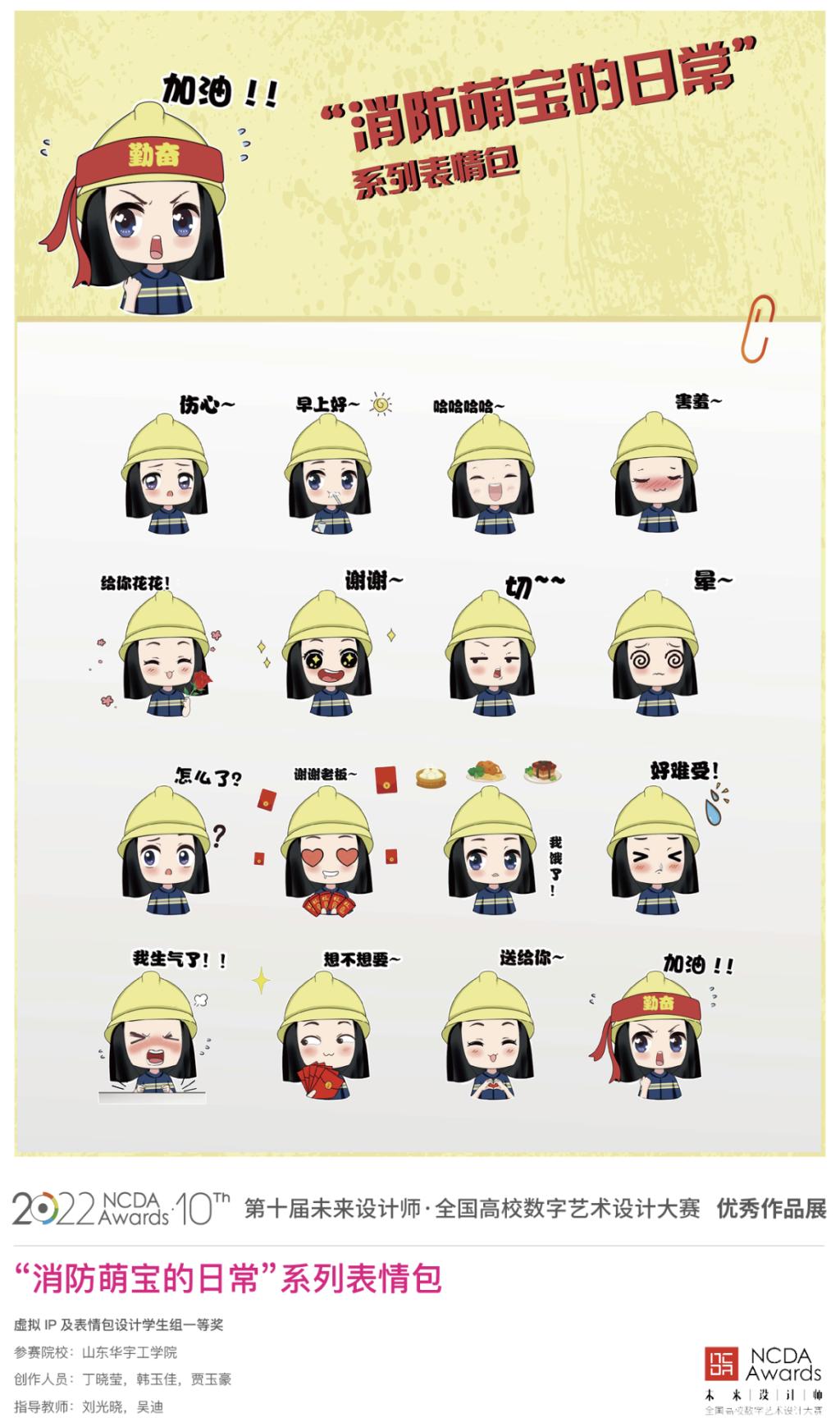 未来设计师•全国高校数字艺术设计大赛是一项高规格、高水平的全国性专业赛事,是高校教育教学改革和创新人才培养的重要竞赛项目之一,具有广泛影响力。我院学生作品《找到你》由郭艺博、胡创洁、张淑瑜、杨璇、樊柏详等同学创作,由张凯、王隆老师指导荣获动画与视频设计学生组国家级一等奖;学生作品《“消防萌宝的日常”系列表情包》由丁晓莹、韩玉佳、贾玉豪等同学创作,由刘光晓、吴迪老师指导荣获虚拟IP及表情包设计学生组国家级一等奖;教师作品《山东冠县西贾村省级美丽乡村示范村规划设计项目》由陈旭、桑佳琳老师主创获评全国高校设计赋能乡村振兴创新案例。yl23455永利集团团总支高度重视学科和技能竞赛的组织和管理工作,依托专业社团,广泛动员师生参赛,加强过程指导,积极推荐和孵化优秀作品,2022年学科和技能竞赛获得国家级奖项63项,省级奖项152项,成绩的取得是“以赛促学、以赛促教、赛学一体化”的教学模式和“一专业一社团一赛事”的工作思路的成果体现。