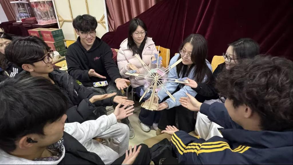 在4号教学楼308教室里,青马工程的手工实践活动正热烈展开。同学们根据小组围坐成圈,废弃竹筷、枯叶在指尖流转——有人搭起风车的骨架,有人将落叶剪成装饰,原本普通的材料,在协作中渐渐拼成灵动的作品。从风车的转轴到微缩景观的苔藓,每一处细节都藏着“以小见大”的思考。大家笑着分享灵感:用回收的快递盒做底座是“绿色环保”,给风车粘落叶是“让青春多些轻盈”。这些手工不仅是物件,更成了青年们表达想法的载体——当指尖的创意落地,“实践出真知”不再是书本里的句子,而是看得见、摸得着的温度。青马工程的意义,或许正藏在这样的时刻里:让青年们在动手创造中学会协作,在彼此的眼神里看见同频的热爱,把向上的力量,揉进每一个认真的当下。