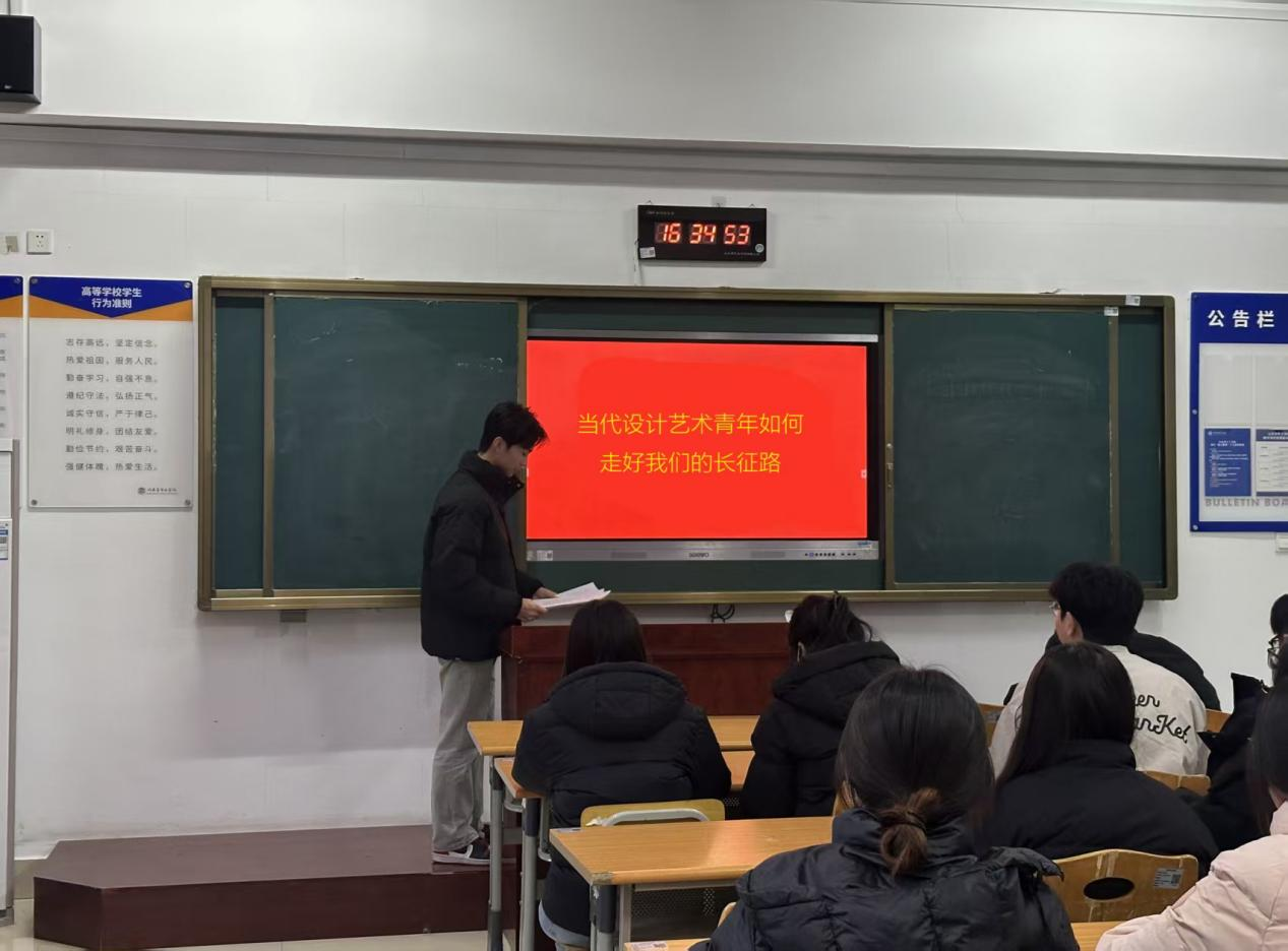 活动中,团员们紧扣“当代设计与艺术青年如何走好我们的长征路”核心议题,在学生骨干的牵头组织下,各班围绕“一二·九”运动的历史背景与精神内涵展开深度研讨:有人专门聚焦先辈青年“以笔为枪”的宣传策略,细致分析他们如何用凝练的文字、生动的漫画,将抗日救亡的热忱传递给每一位民众,让沉睡的家国意识在街头巷尾被点燃;也有人结合自身设计专业的学习经历,畅想若身处1935年,会如何用版式、色彩等设计语言,让救亡声音传得更远,在历史与现实的对照思辨中,大家逐渐厘清了青年责任的“变与不变”:变的是专业实践的时代场景,不变的是以所长回应时代需求的初心。