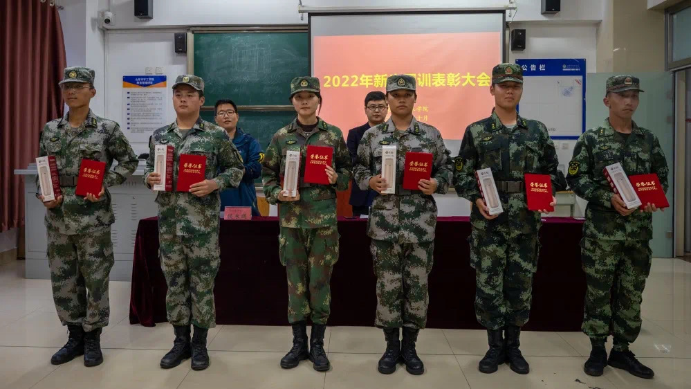 一年好景君须记,正是橙黄橘绿时。在这秋风送爽、丹桂飘香的美好季节,学院2022级新生顺利完成军事训练任务,yl23455永利集团收获满满,硕果累累。为表彰先进,激励同学们在以后的学习和生活中继续保持艰苦奋斗、顽强拼搏的优良作风,学院于2022年10月5日在22号楼312室召开2022级新生军训工作表彰会,学管科长郑帅、学管干事、军训教官、2022级新生辅导员老师和学生代表参加了表彰会。