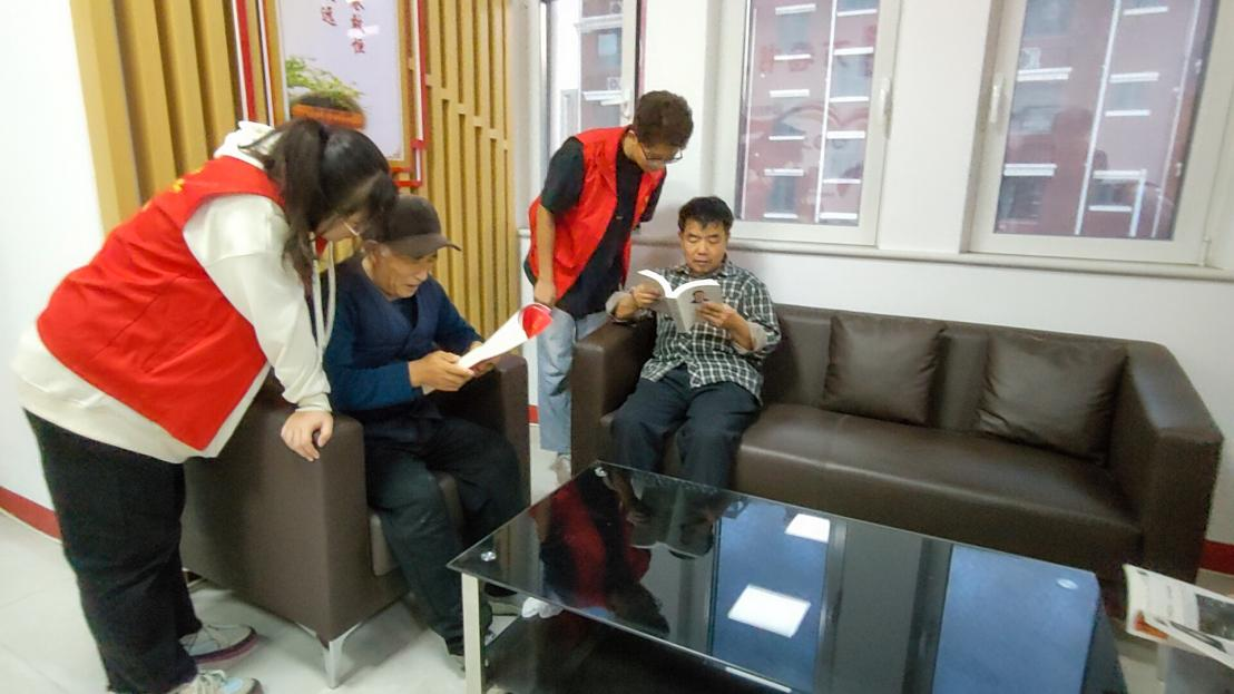 活动现场,每人手里拿着一本厚厚的书本,专注地阅读,静静地品味文字的美妙,眼神中透露出对故事的渴望和好奇。图书室里弥漫着一股安静而祥和的氛围,居民们不仅仅是在阅读,更是在与书籍进行一次心灵的对话。通过阅读,拓宽了自己的视野,丰富了自己的知识。阅读结束后,同学们和社区居民在图书室相互讨论,进行亲切的交流,彼此分享感受。