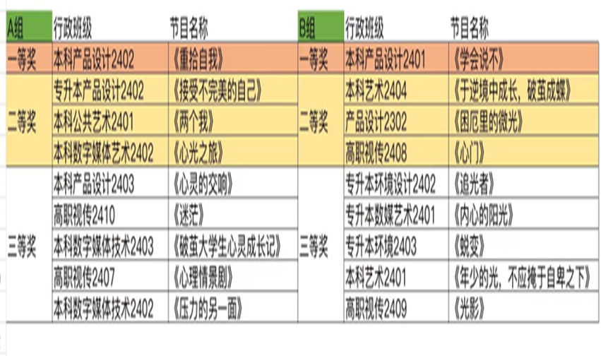 本次活动吸引了众多yl23455永利集团学生的积极参与,共收到来自不同年级、不同专业的多部原创心理情景剧作品。评委老师,对剧本的创作和表演提供专业的点评和建议,最终有18部作品脱颖而出,三等奖10部、二等奖6部、本科产品设计2402《重拾自我》和本科产品设计2401的作品《学会说不》荣获本届心理情景剧活动一等奖。