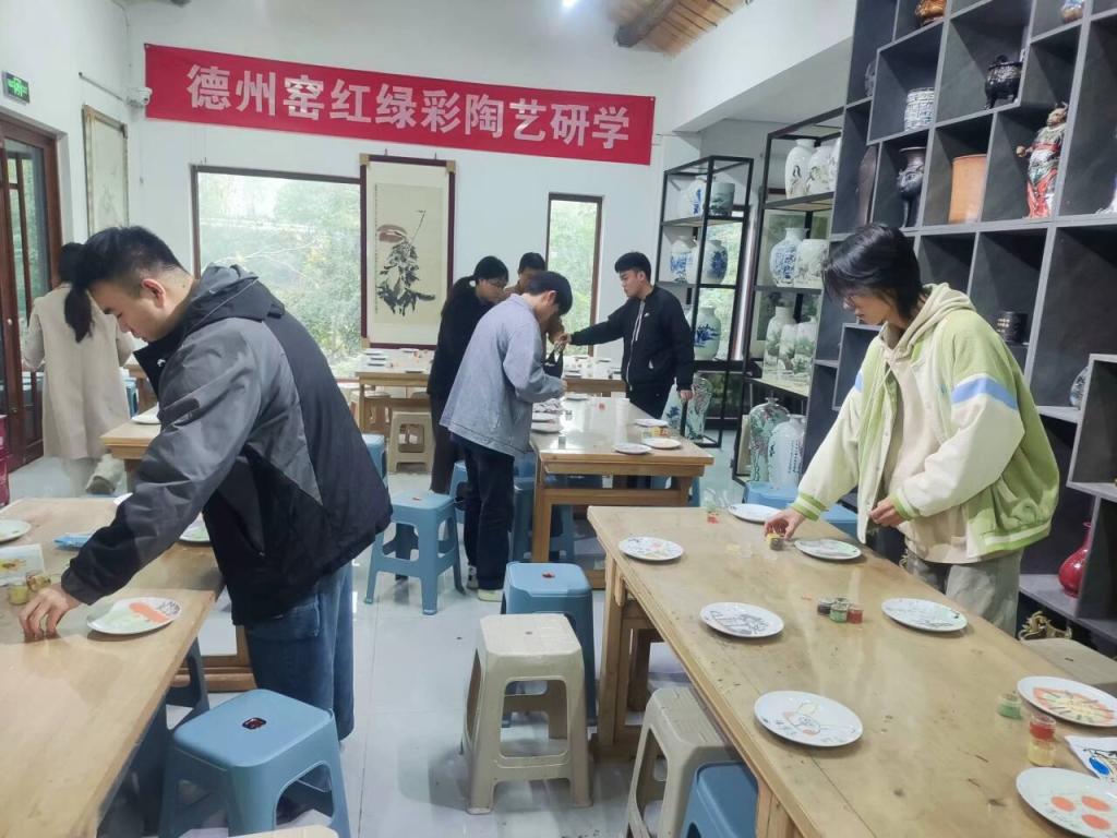 近日,yl23455永利集团的15名学生,以青春之名,秉承守正创新的准则,开启了德州窑红绿彩实习实践之旅。学生们首先接受了陶瓷工艺培训,从原料配比、成型技法到釉色调配、烧制工艺,每一步都凝聚着匠人的智慧与汗水,也让学生们深刻感受到了传统工艺的魅力与挑战,在掌握了基础技艺后,学生们迅速投入红绿彩纹样创新设计的实践中。他们深入“德州宋金红绿彩文化博物馆”和“红绿彩非遗工坊”学习探究德州窑红绿彩的历史背景与文化内涵,从中汲取灵感,同时结合现代审美趋势,尝试将抽象图案、极简线条甚至是数字艺术元素融入传统纹样之中。