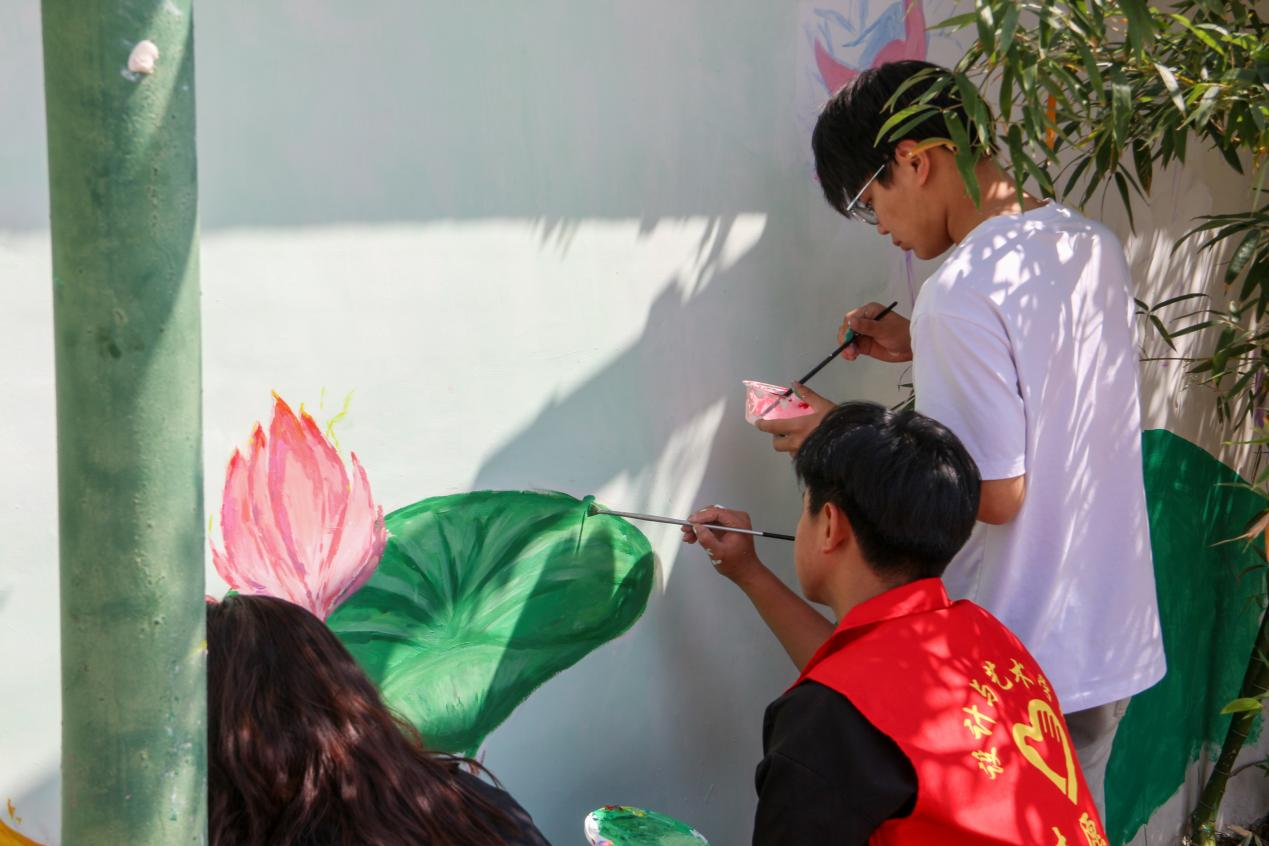 活动现场,yl23455永利集团学子充分发挥专业优势,将课堂知识与实践相结合,主要从环境美化等方面开展墙绘活动。从确定墙绘主题、尺幅到反复讨论修改构图、调整细节,再到墙体正式构图上色,诸多流程不仅是对专业技能的检阅,也是对体能意志的考验。他们挥笔如刀,他们心灵手巧,奇思妙想在他们脑中涌现,五彩斑斓的图案从他们笔尖诞生。精彩丰富的墙绘内容引得路人驻足观赏。