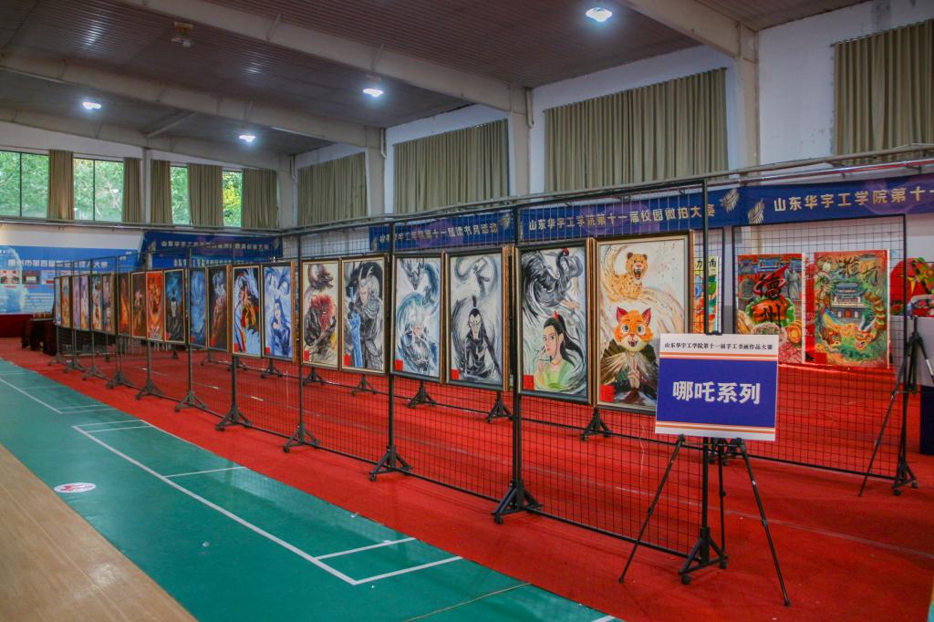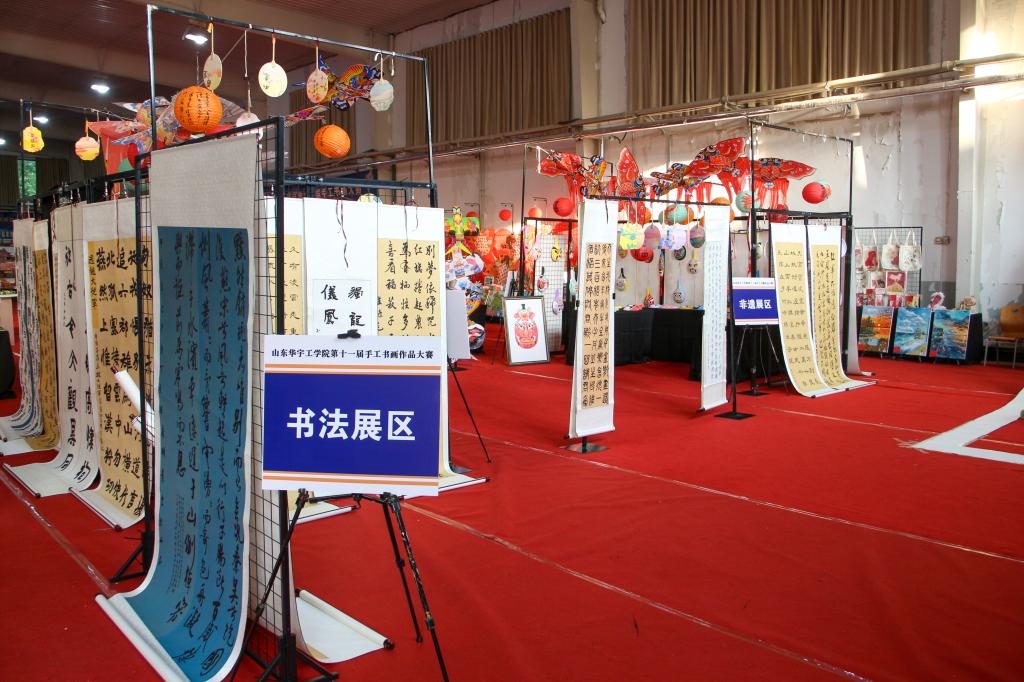 非遗文创作品展区佳作纷呈,深植民族情感,点燃文化传承薪火;城市地标展区作品聚焦山东城市特色,深挖历史、地理等元素,雕琢出彰显城市魅力的主题文创;绿色生态展区作品妙笔绘自然,借水墨、拓印等技法勾勒生态美,传递绿色理念;哪吒系列展区作品韵味绵长,汲传统文化养分,凭细腻笔触、精巧构思演绎传奇,令古老神话在时代中熠熠生辉。手工区里,巧手翻飞,将平凡材料幻化为精巧物件,每一件都饱含匠心与温度;书法区中,墨香氤氲,笔走龙蛇间,传统书法的神韵与气度尽显,于一笔一划中传承千年文脉。